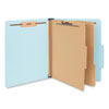 With two dividers and fasteners, eco-friendly classification folders make ideal project files. Inner, 17 point kraft dividers help subdivide your letter-size documents with six filing surfaces. 2" embedded fasteners in positions No. 1 and 3 on the covers and 1" dual fasteners on dividers keep documents secure and allow you to file in sequential order. Durable, Tyvek tape spine expands 2-1/2" with your project. Standard, 2/5-cut tab right of center with an undercut score on front cover provides room for labels or handwritten titles. Classification folders are made with durable, 25 point pressboard covers and a high percentage of recycled material. |