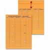 Interdepartmental envelopes are ruled for interdepartmental routing with five columns across. Column headings include date, deliver to, department, sent by and department. Holes allow visual acknowledgment of contents. String-and-button closure secures the envelope and its contents. Envelopes are printed on both sides with spaces for 52 entries and made of 28 lb. Kraft stock. |