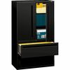 42" wide lateral file features a roll-out binder storage/posting shelf and four drawers with hanging file rails for side-to-side filing of letter-size, legal-size or A4-size folders for versatility. Each drawer has a magnetic label holder for easy identification where you need it. Design also features a core-removable lock for security, dual locking bars, full-width pull, ball-bearing slide suspension for smooth opening and closing, reinforced base, and four adjustable leveling guides for stabilization. Interlock system prohibits the extension of more than one drawer at a time for your safety. Counterweight prevents tipping. Lateral file meets or exceeds applicable ANSI/BIFMA standards. More from the Manufacturer |