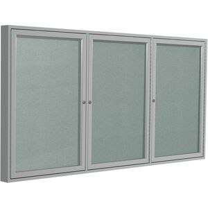 | Ghent 3 Door Enclosed Vinyl Bulletin Board with Satin Frame - 36" Board Height x 72" Board Width - Silver Vinyl Surface - Locking Door, Tackable, Water Resistant, Weather Resistant, Self-healing, Tamper Proof - Satin Aluminum Frame - 1 Each - TAA Compliant |