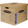 Moving Boxes from Bankers Box offer an innovative design with durable hand holes for comfortable moving and lifting. FastFold One Step Setup and self-locking lid deliver easy, time-saving setup that does not require tape for secure closure. Large box is easy to break down and store flat until ready for reuse. Eco-friendly box is made of material strong 32 ECT C-Flute Kraft corrugated board and contains a high percentage of recycled material. More from the Manufacturer |
