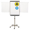 Ingenuity Presentation Easel features durability, sturdy structure, smart design and portability that make this easel a must for conference and meeting rooms, training and seminars, offices and schools. It is dual-sided and features a replaceable, dry-erase writing surface on one side as well as the ability to mount easel pads to both sides. Easel body is made of blow-molded, high-density polyethylene that is dent-resistant and scratch-resistant. A-frame design features a sturdy writing base, easy-access side marker holder, accessory tray and an inside storage shelf for projectors or pointers. Four locking casters ensure easy mobility from room to room. |