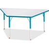 Trapezoid-shaped activity table for adults is perfectly sized to let you work comfortably. Multiple trapezoid tables can be conveniently arranged in an assortment of configurations to accommodate any space. Durable laminate features an easy-to-clean surface. TRUEdge is permanently thermo-fused to the edges to prevent chipping. Extra-safe, dual-screw steel legs allow you to easily adjust the height of the table. Powder-coated, adjustable legs can be repositioned in 1" increments to provide maximum comfort. Leg guides reduce squeaks, prevent snags and eliminate rusting. |