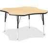 This four-leaf activity table provides the perfect seating arrangement for up to four adults. Durable laminate features an easy-to-clean surface. TRUEdge is permanently thermo-fused to the edges to prevent chipping. Extra-safe, dual-screw steel legs allow you to easily adjust the height of the table. Powder-coated, adjustable legs can be repositioned in 1" increments to provide maximum comfort. Leg guides reduce squeaks, prevent snags and eliminate rusting. |