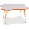 This six-leaf activity table provides the perfect seating arrangement for up to six adults. Durable laminate features an easy-to-clean surface. TRUEdge is permanently thermo-fused to the edges to prevent chipping. Extra-safe, dual-screw steel legs allow you to easily adjust the height of the table. Powder-coated, adjustable legs can be repositioned in 1" increments to provide maximum comfort. Leg guides reduce squeaks, prevent snags and eliminate rusting. |