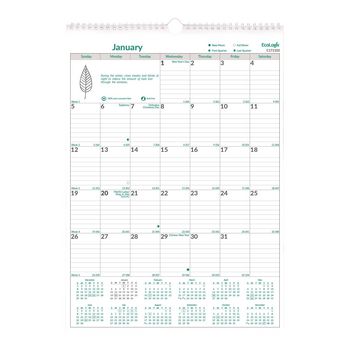 Designed with the future in mind with an ecological tip each month. Ruled daily blocks and full-year reference calendar for future planning. Reinforced chipboard backer.