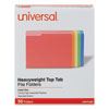 Top-tab folders are ideal for organizing files or archives. Sturdy, 11 point construction protects documents. Straight-cut tab is 1/2" high. Corners are rounded in front and back. Folders are also scored for 3/4" expansion. |